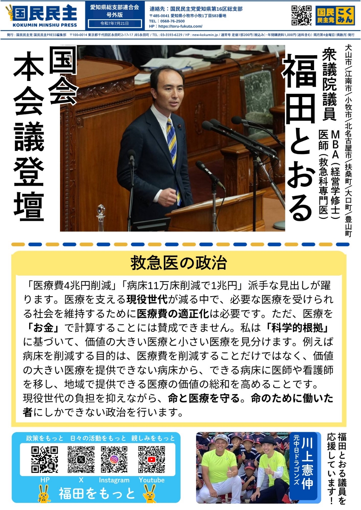 赤字経営の病院を支えるための支援策、外科医不足・診療科偏在の問題に関して高市総理、上野厚労大臣に対して、質疑しました。